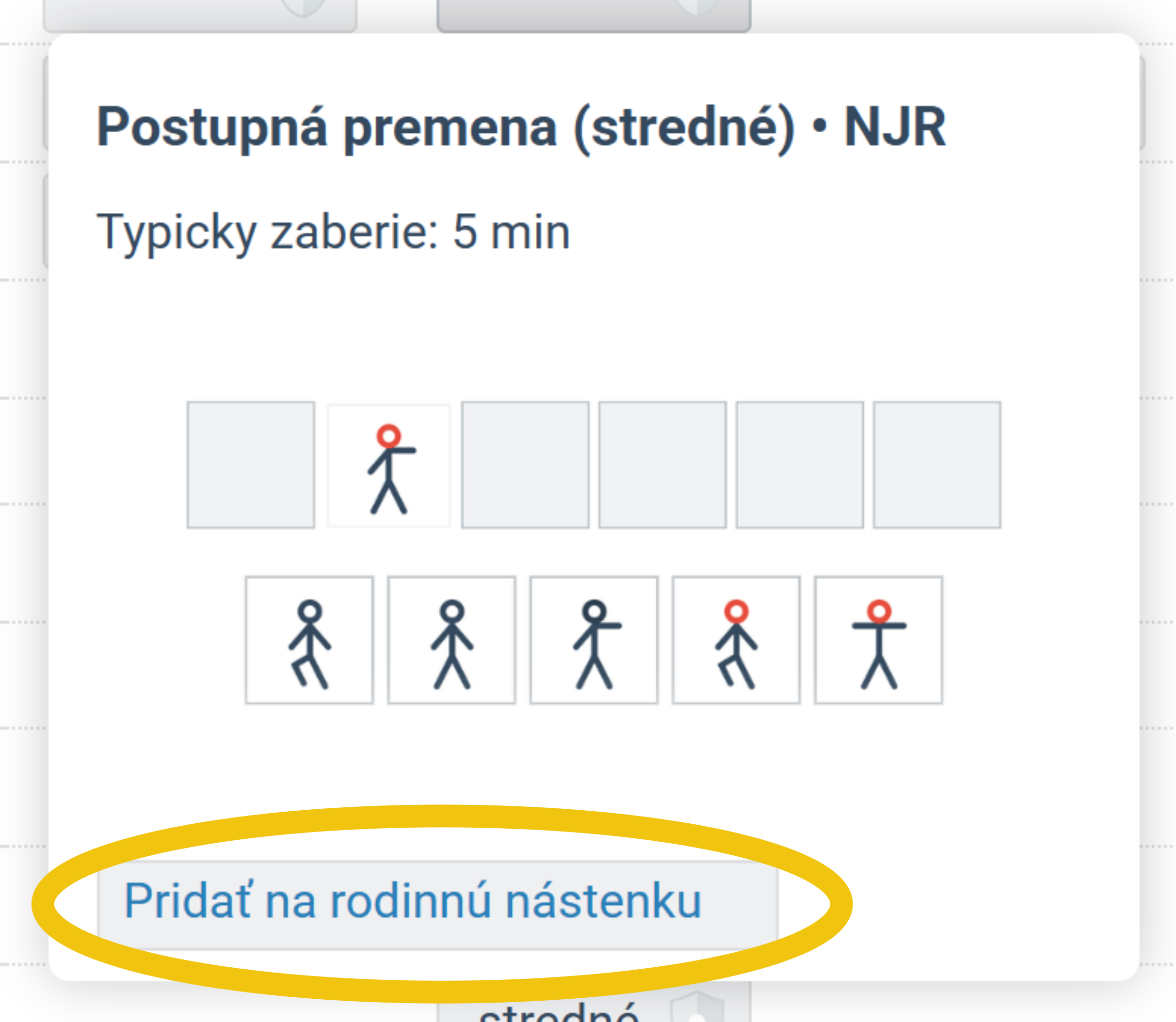 Pripínať úlohu je možné aj z prehľadu cvičení podľa tém alebo podľa typu cvičenia. Možnosť na pripnutie na nástenku tu nájdete po nabehnutí myšou na tlačidlo pri cvičení. Tým sa vám zobrazí vyskakovací dialóg, v ktorom dole vyberiete Pridať na rodinnú nástenku. Úpravou sady (pridaním termínu) vytvoríte z nástenky úlohu.